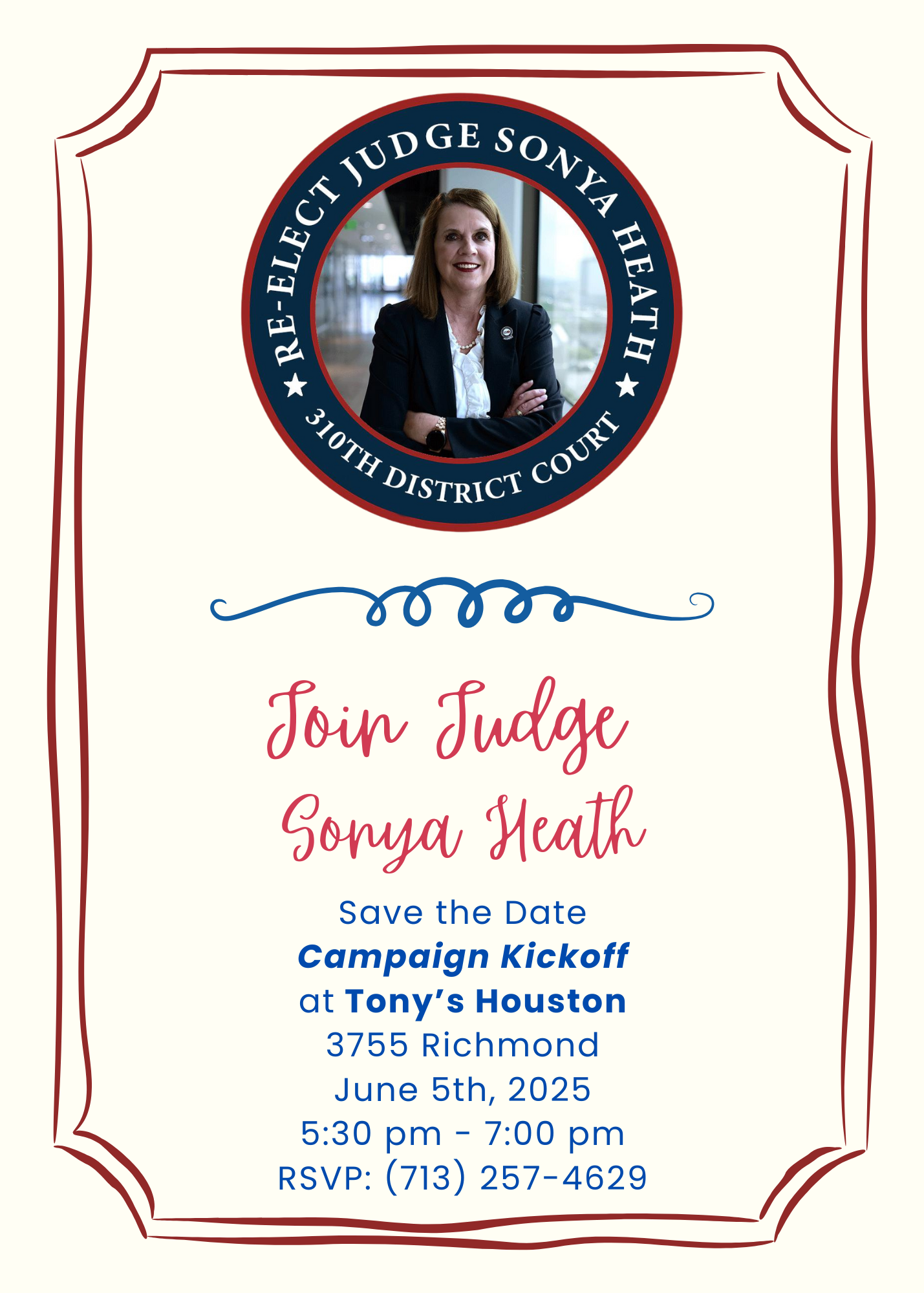 Political Advertising paid for by the Sonya Heath Campaign, Hal Hale, Treasurer, in compliance with the Judicial Campaign Fairness Act.